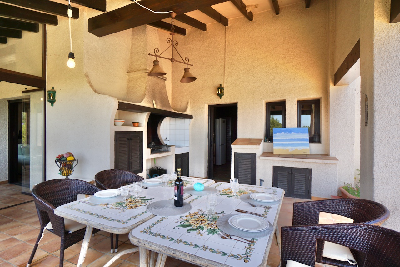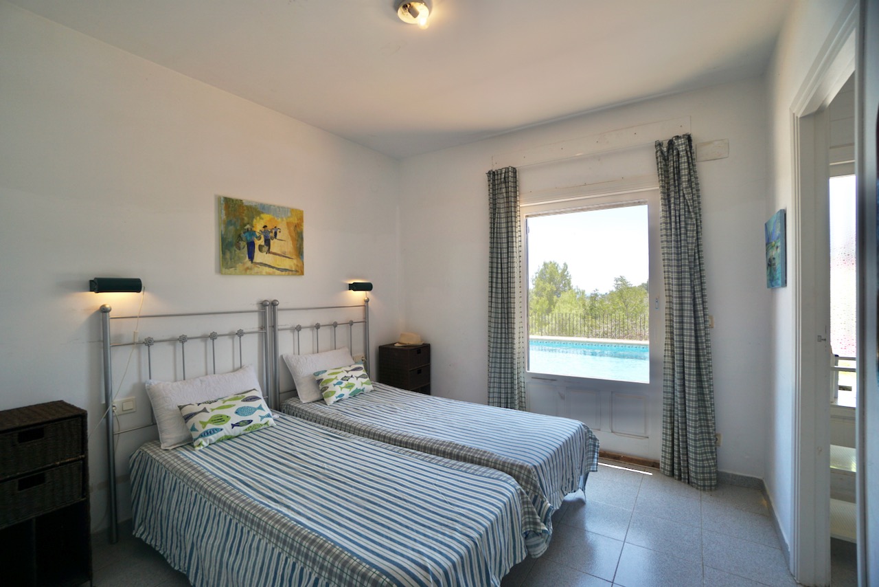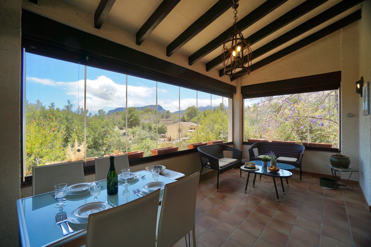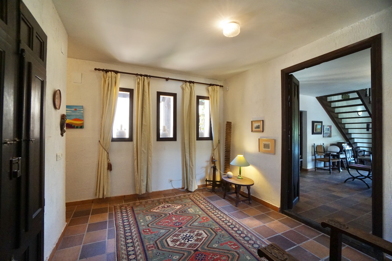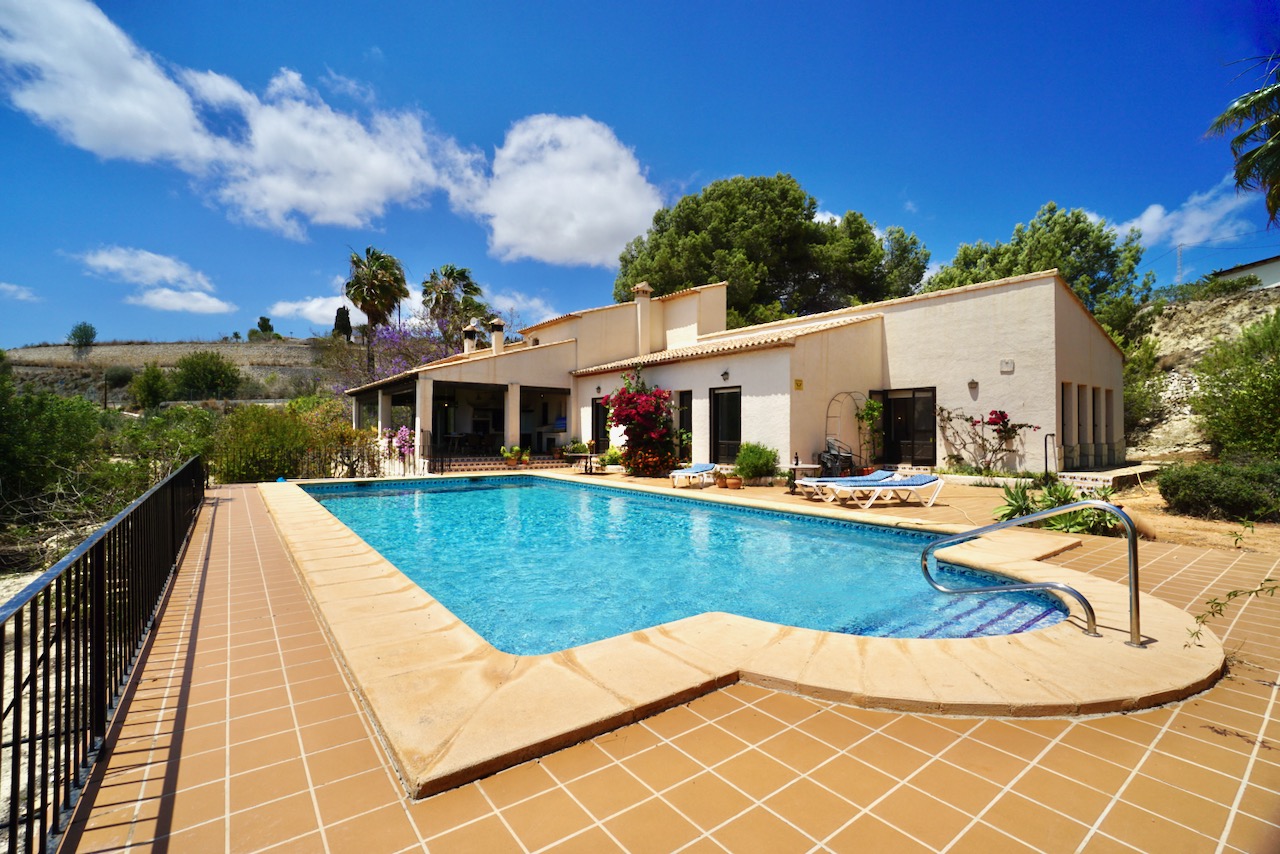 In an elevated location, here is a unique finca with beautiful views over the countryside all the way down to Calpe, the Mediterranean Sea and the Penon d’Ifach. The traditional town of Benissa is 5 minutes by car where there are plenty of amenities including a large weekly market, lots of shops and restaurants to sample. Heading to the coast, Calpe and its sandy blue flag beaches are only 6km away. The driveway leads to a parking area and a spacious garage for one car, plus lots of room for storage. The farm is set on a rustic plot of approximately 5000msq and surrounded by a lovely selection of mature trees and plants. There are fruit trees including figs, oranges and lemons plus palms and a pretty purple Jacaranda tree next to the house. From the parking area, we enter the farm through the wooden front door and into the reception room where there is a guest bathroom with toilet and also a storage room. To the left there is a door that provides internal access to the garage and there are also windows here that open to a beautiful internal courtyard. A cool place to retreat in the summer. From the reception, we step into the large open-plan dining and living room with double height ceilings. The room is full of character and very spacious with a large stone fireplace, wooden ceiling beams, a sofa area and a large dining table with chairs. Stairs up from living room take us to the upper mezzanine level. Here is a large room that could be used as an office space or a separate reading room. Also on this level there is a double bedroom with an ensuite bathroom. Back downstairs, the front of the lounge room has glass sliding doors that open to the Naya. The Naya is glazed-in but the panels can be opened so you can enjoy the sea views in comfort in Summer or Winter. This space can also be used for relaxing on sofas and for dining. There is a separate kitchen with a traditional wood burning oven adjacent to the lounge/dining room. From the kitchen, we step outside to the shaded dining and BBQ area next to the pool terrace, the perfect place for entertaining family and friends. Next to the kitchen there is a long central hallway providing access to the central courtyard, two storage cupboards, a utility/laundry room and four double bedrooms all with ensuite bathrooms and built-in wardrobes. Two of the bedrooms have lovely views over the pool to the beautiful Mediterranean Sea. The extra large pool is 12 x 6 m pool and surrounded by a spacious terrace with lots of room for relaxing on sun loungers. There is also a pool shower. With the property being south-facing, there is full sun all day and all year round. KEY FEATURES: Finca with 5 bedrooms all with ensuite bathrooms Beautiful sea views Stone Fireplace Surrounded by mature trees and fruit trees Internet and Satellite TV Extra large pool 12 x 6 m with pool shower & WC Garage Storage room & a utility room Built in wardrobes – all bedrooms Lovely Naya and outdoor BBQ area with sink This property is ready for renovation and has so much potential. Call us now to arrange a visit!